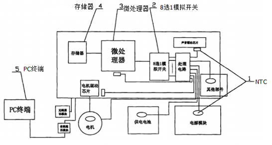 貼片式NTC熱敏電阻(與之連接的有聲音驅(qū)動(dòng)芯片、微處理器和電機(jī)驅(qū)動(dòng)芯片)和