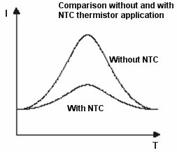 注意,熱敏電阻不能在電路中并聯(lián)使用,因?yàn)橐粋€單元將傾向于導(dǎo)通所有近期可用的電流。